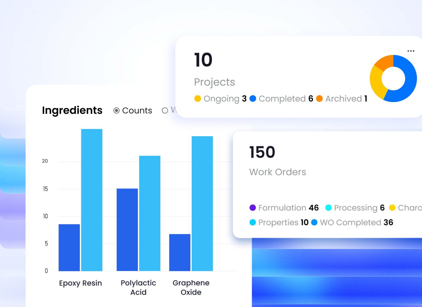 Polymerize Connect automatically surfaces hidden correlations between ingredients and performance metrics. Identify non-obvious patterns, visualize property trade-offs, and pinpoint formulation sweet spots, all from your existing data.