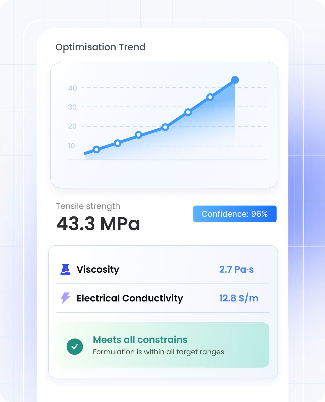 Our proprietary platform accelerates discovery with domain-guided AI models that predict material properties and optimize formulations.