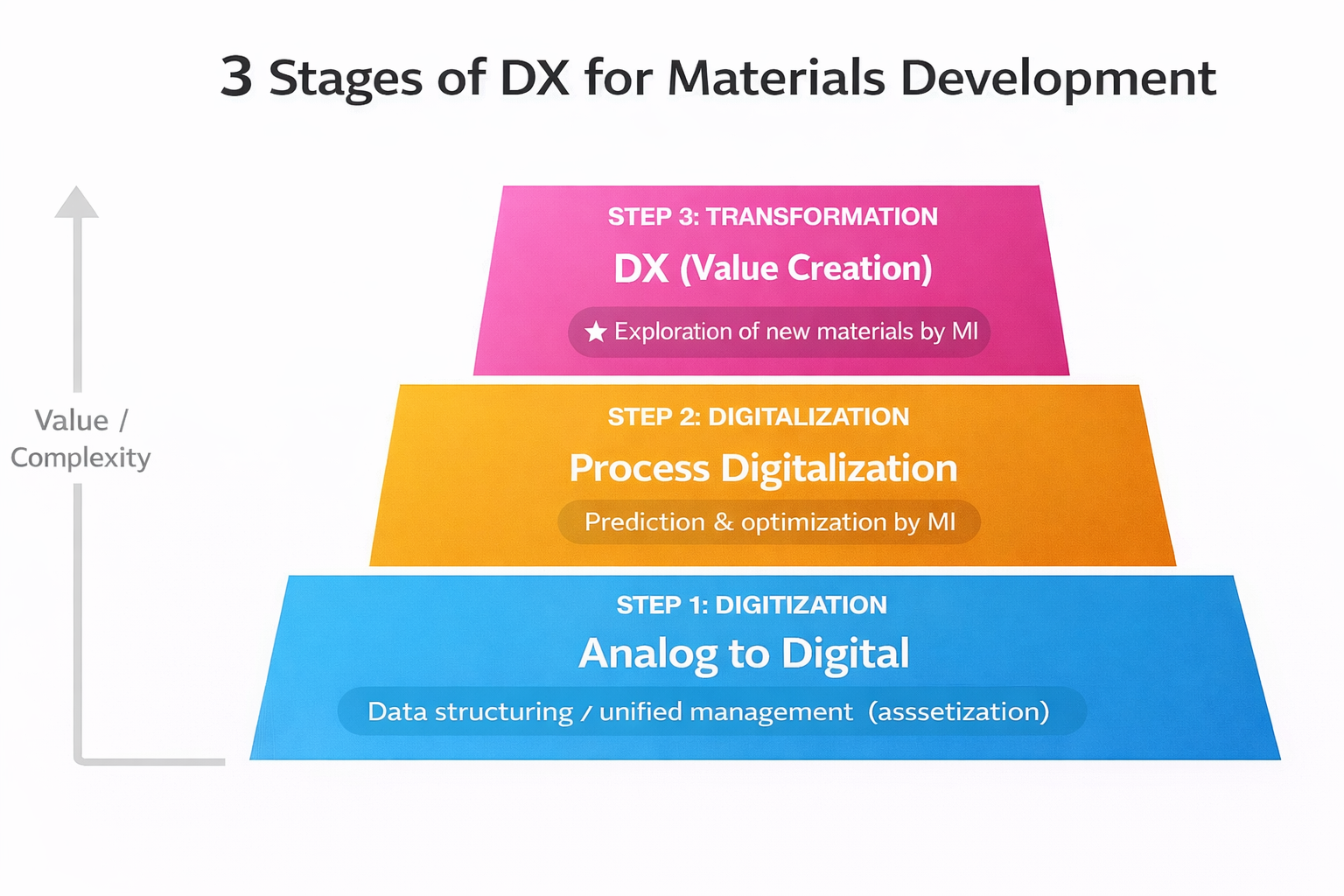 DX is often described as a three-step progression.At Polymerize, we adapt this framework specifically for materials R&D